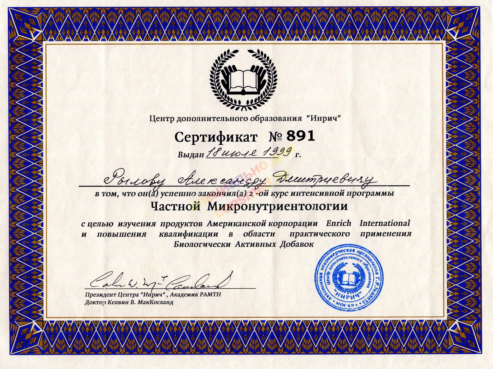 | Должность: | врач регуляторной медицины, валеолог-микронутриентолог, терапевт |