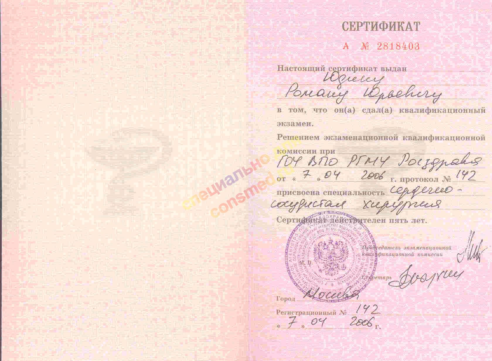 | Должность: | Доктор медицинских наук; Руководитель Клиники Сосудистой Хирургии |