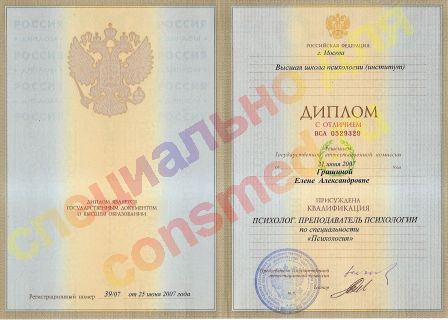 | Диплом об окончании Высшей школы психологии Тип: Диплом об окончании мед. или фарм. ВУЗа |
