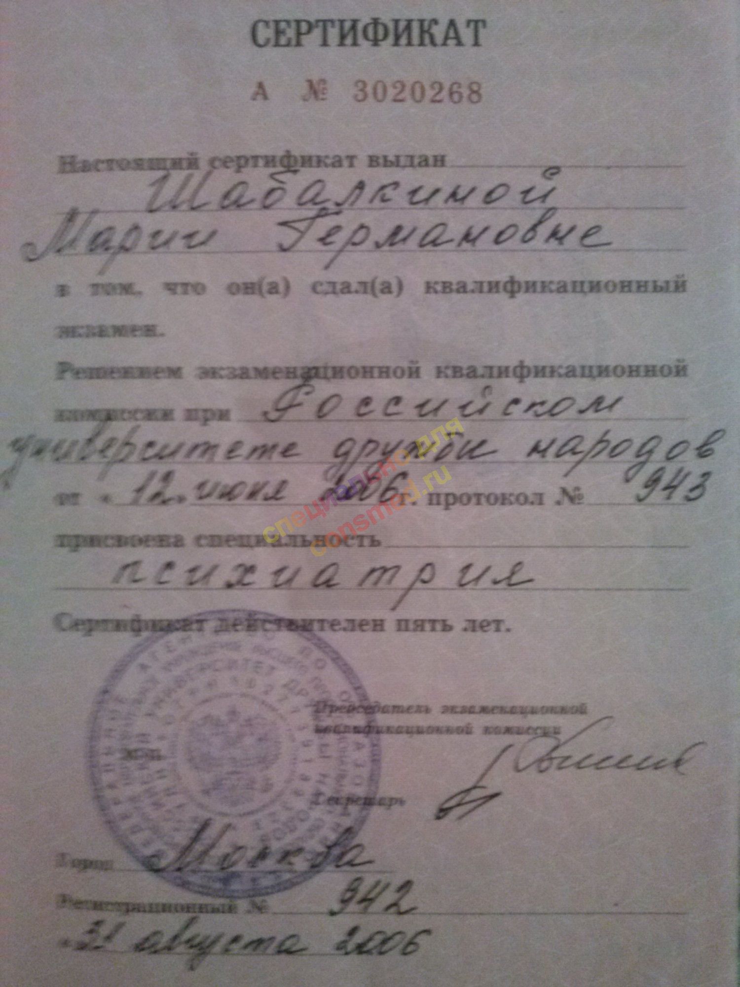 | Должность: | врач-психиатр, психотерапевт |