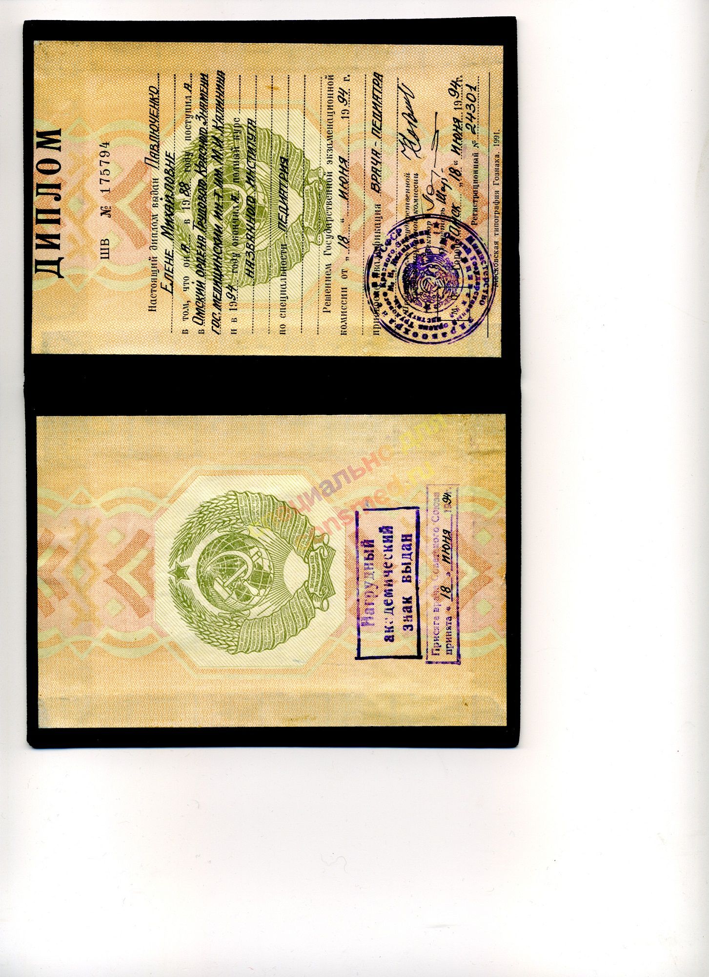 | Диплом о медицинском образовании Тип: Диплом об окончании мед. или фарм. ВУЗа |